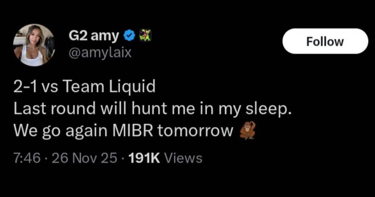 Horas após o revés, amy usou seu perfil no X (antigo Twitter) para desabafar sobre o clutch vencido por daiki no último round da série. No mesmo post, mencionou o MIBR, próximo adversário da G2, e inseriu um emoji de macaco.